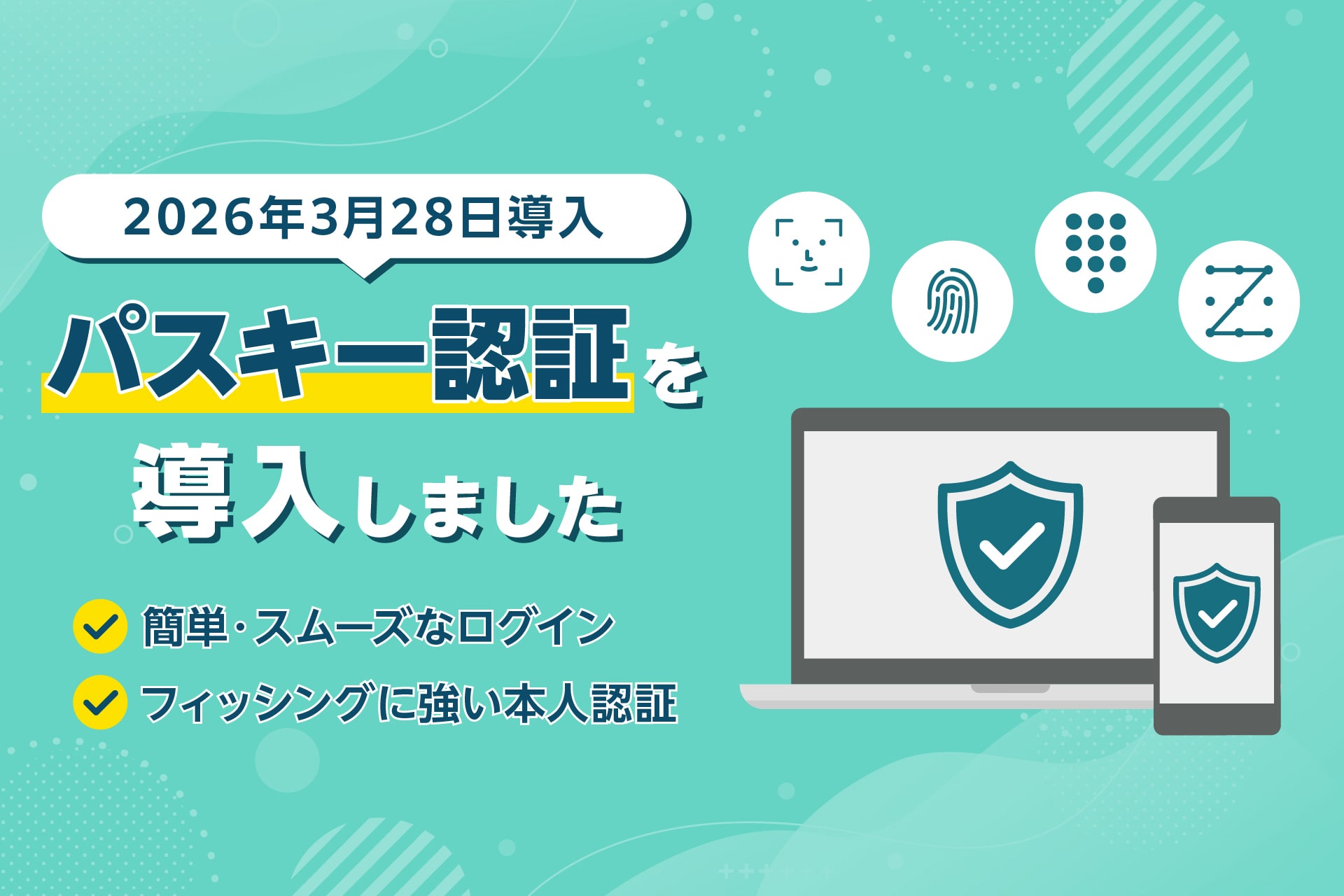 当社では、より高い安全性と利便性を備えたパスキーを導入し、お客様の大切な資産および情報の保護に努めてまいります。